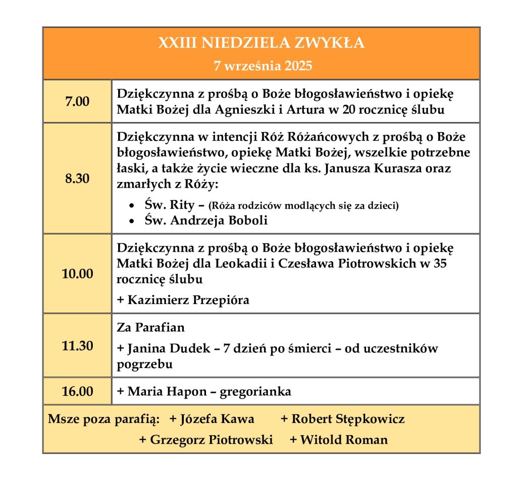 Ogłoszenia parafialne – XXIII Niedziela Zwykła – 7.09.2025 r.