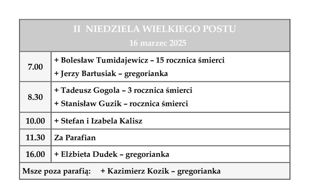 Ogłoszenia parafialne – 2. Niedziela Wielkiego Postu – 16.03.2025 r.