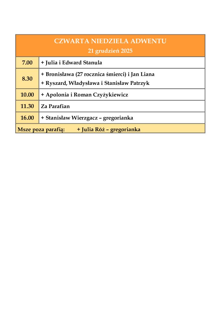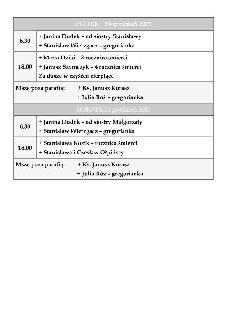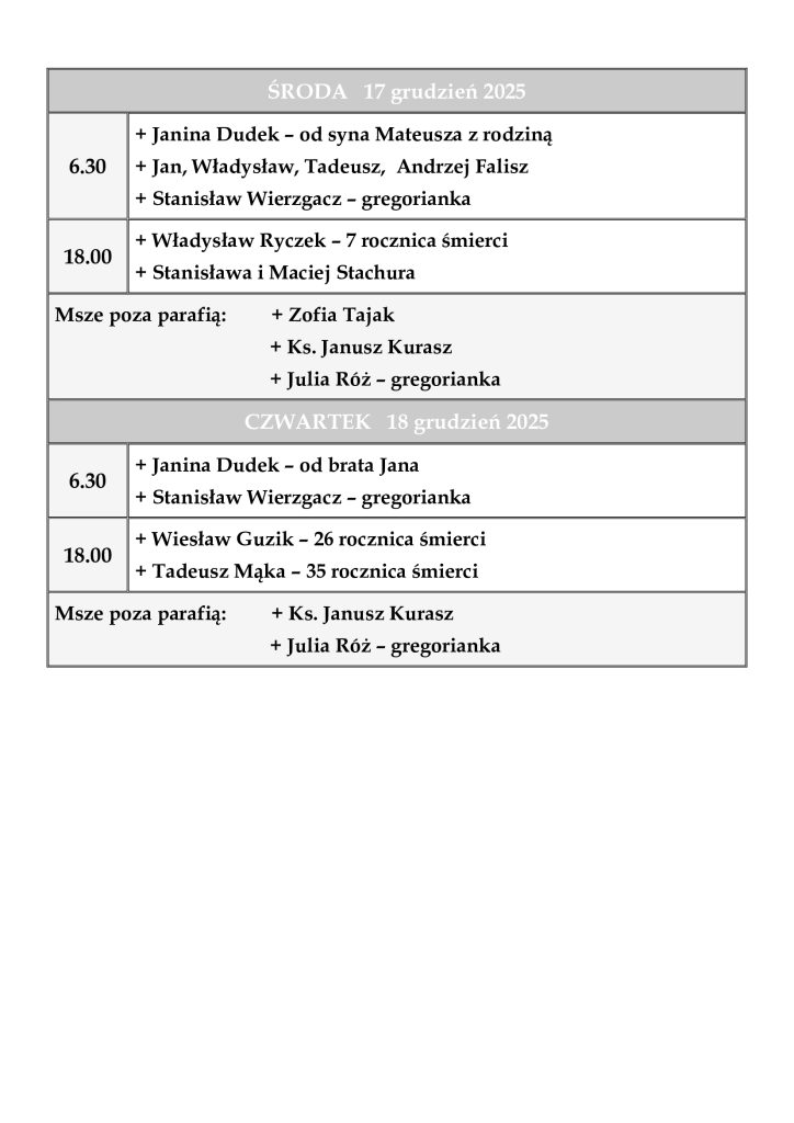 INTENCJE MSZALNE 15 – 21 grudzień 2025 r.