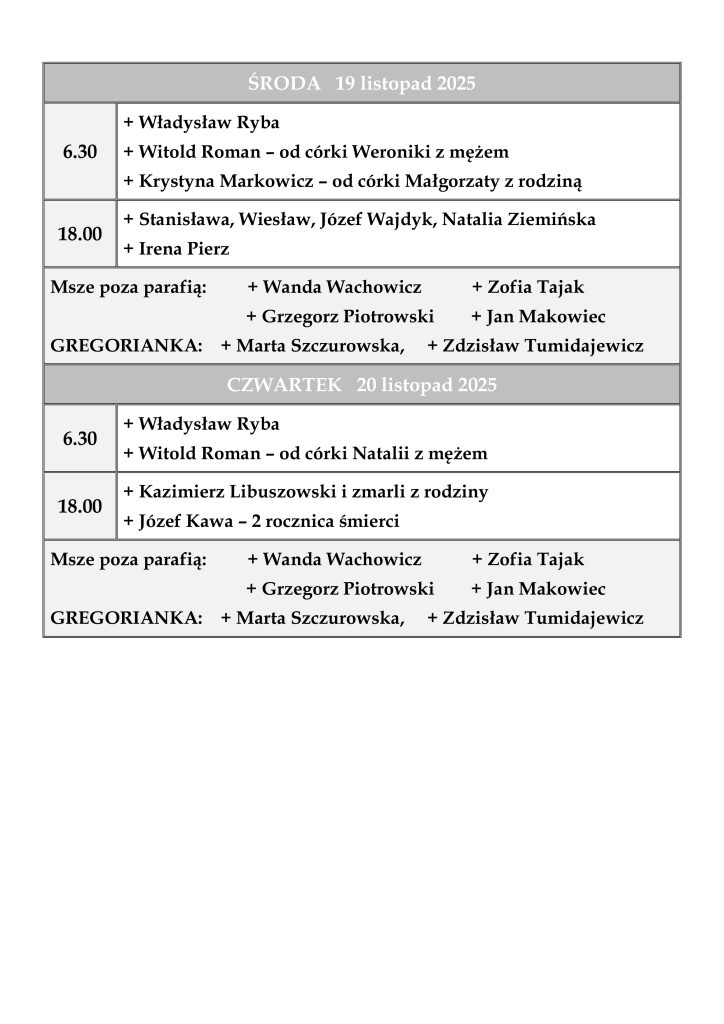 OGŁOSZENIA DUSZPASTERSKIE 33 Niedziela Zwykła 16.11.2025