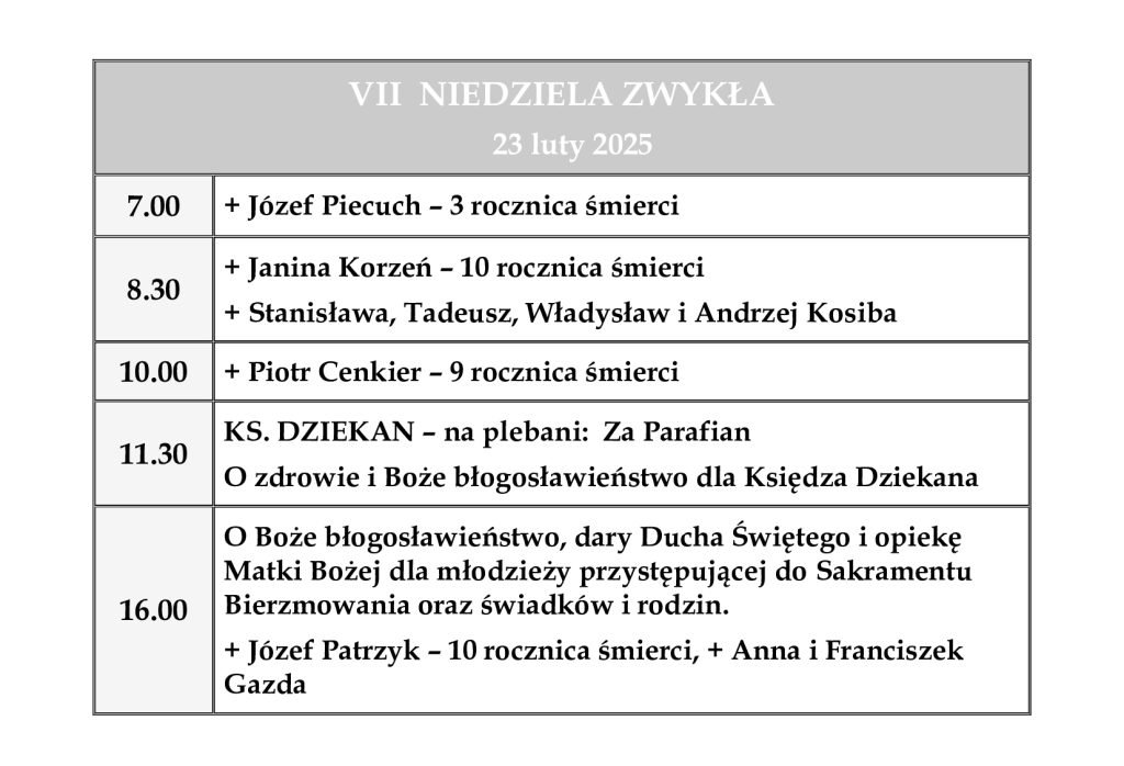 INTENCJE MSZALNE 17 – 23 luty 2025 r.