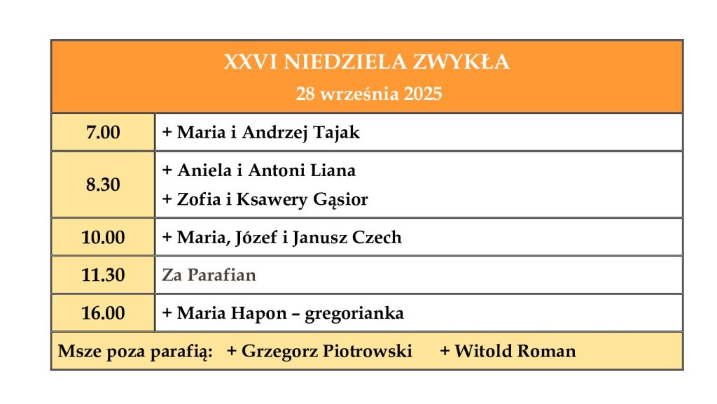 Ogłoszenia parafialne – XXVI Niedziela Zwykła – 28.09.2025 r.