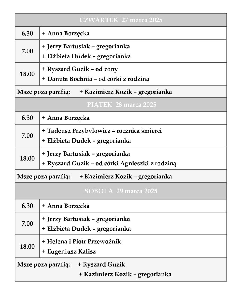 INTENCJE MSZALNE 24 – 30 marzec 2025 r.