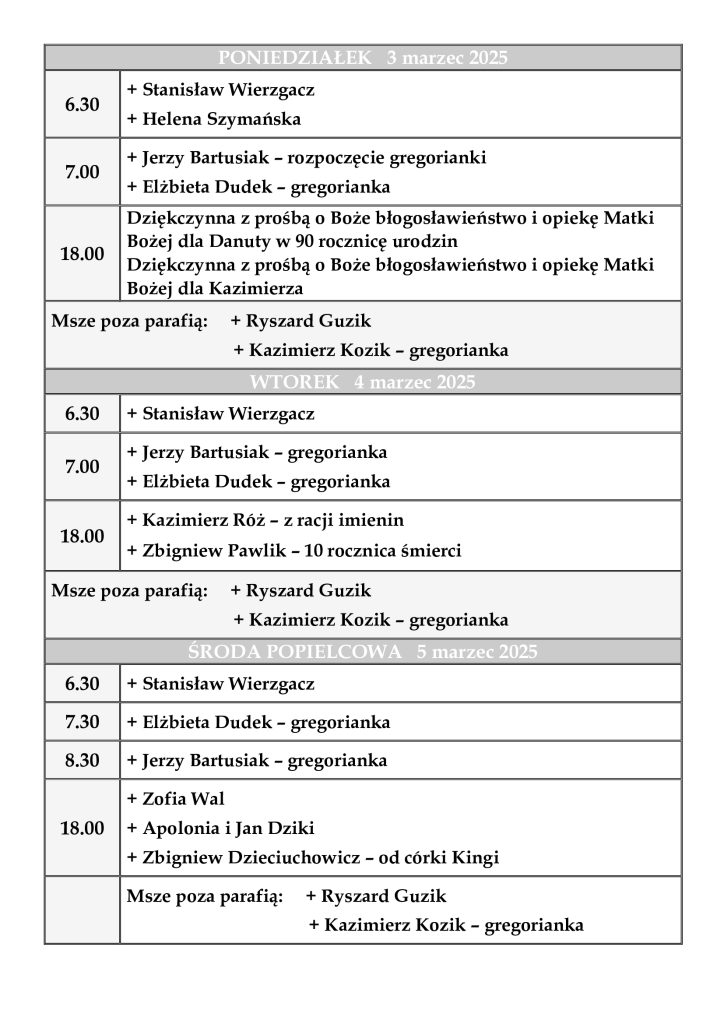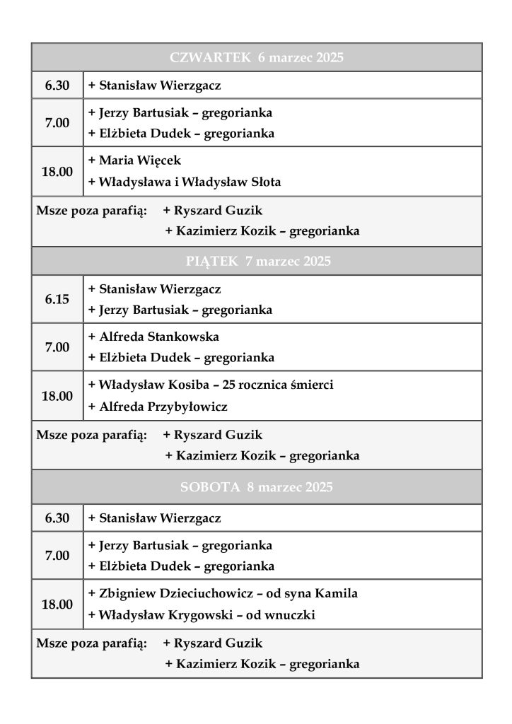 INTENCJE MSZALNE 3 – 9 marzec 2025 r.