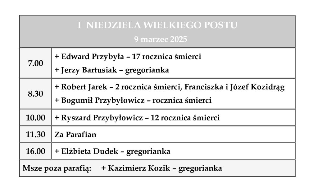 Ogłoszenia parafialne – 1. Niedziela Wielkiego Postu – 9.03.2025 r.