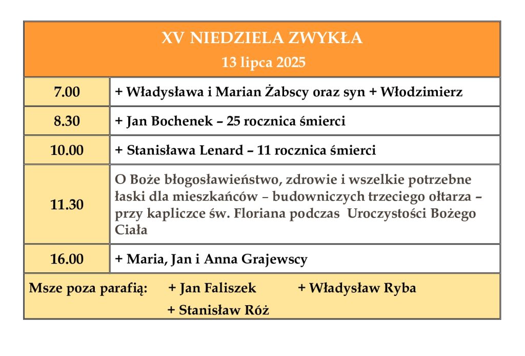 Ogłoszenia parafialne – XV Niedziela Zwykła – 13.07.2025 r.