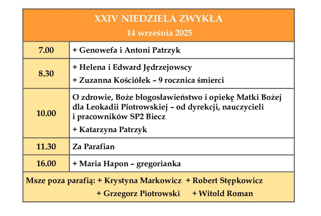Ogłoszenia parafialne – XXIV Niedziela Zwykła – 14.09.2025 r.