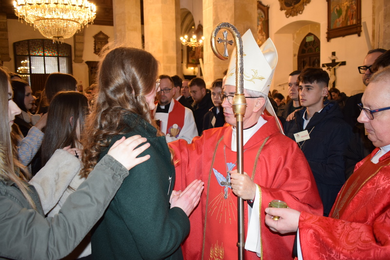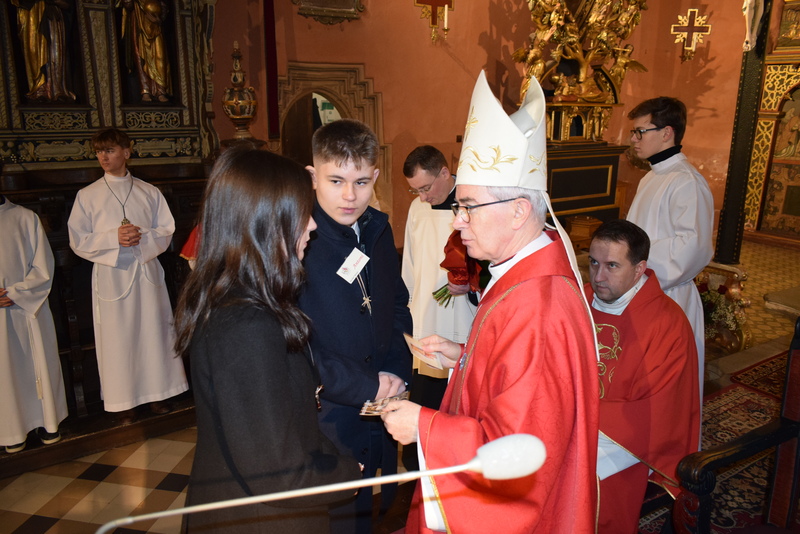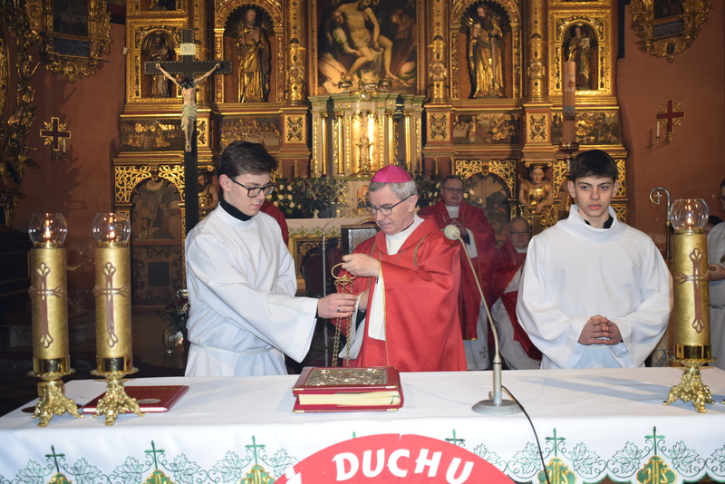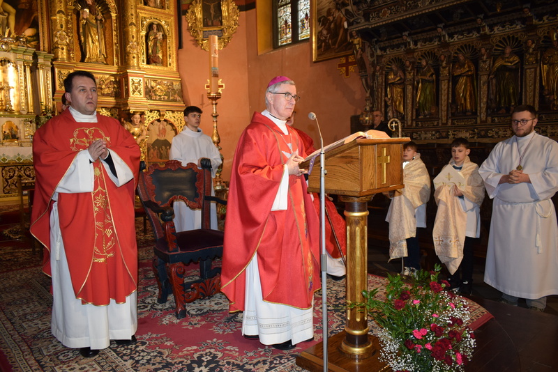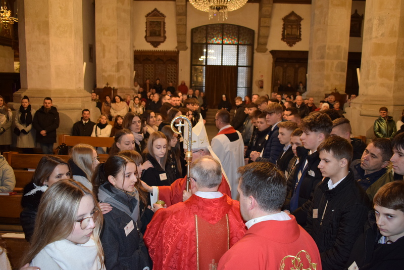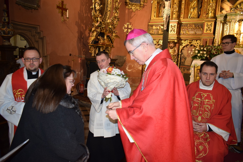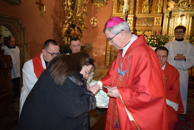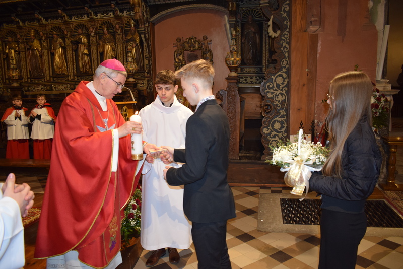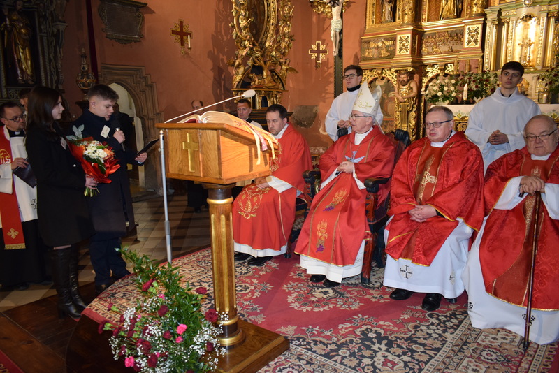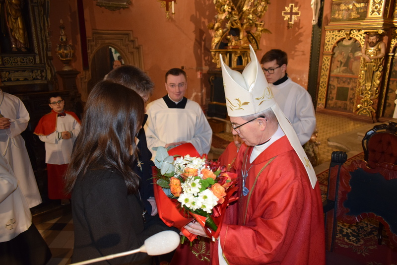 W niedziele – dnia 23 lutego br. – o godz. 16.00 Ksiądz Biskup Jan Wątroba – Ordynariusz Diecezji Rzeszowskiej udzielił Sakramentu Bierzmowania 41 uczniom z klas ósmych. Odwiedziny Księdza Biskupa odbyły się w ramach wizytacji kanonicznej naszej wspólnoty parafialnej. Dlatego podczas Mszy Świętej przedstawiciele Rady Parafialnej wręczyli także Księdzu Biskupowi sprawozdania z działalności Grup Duszpasterskich.