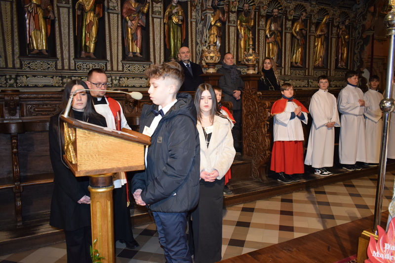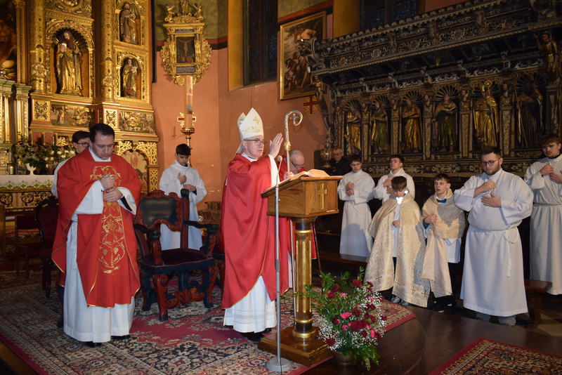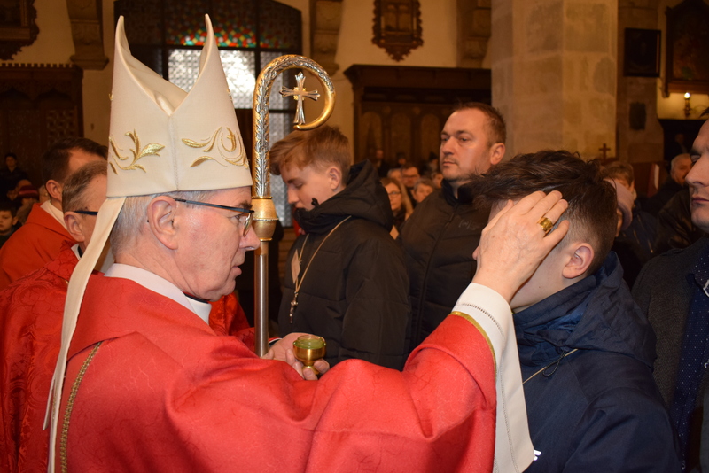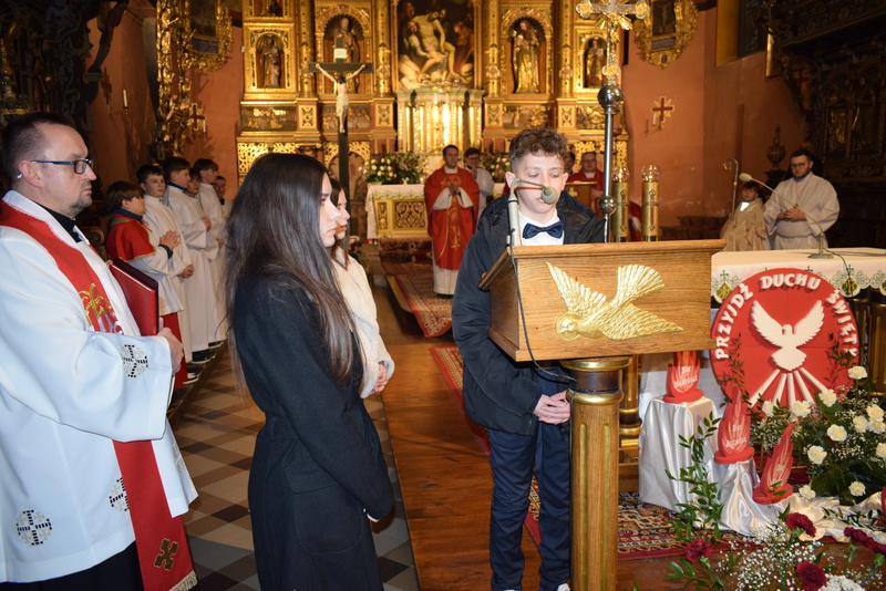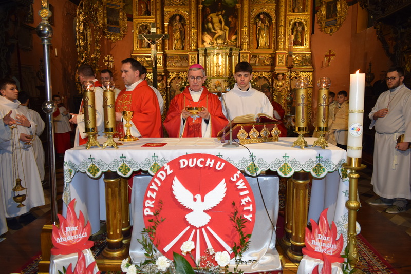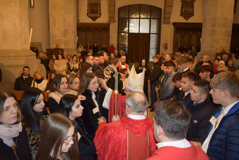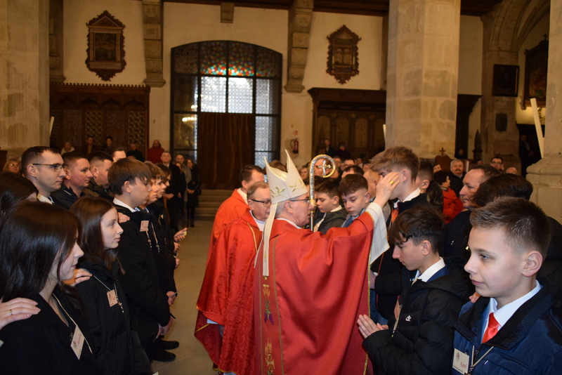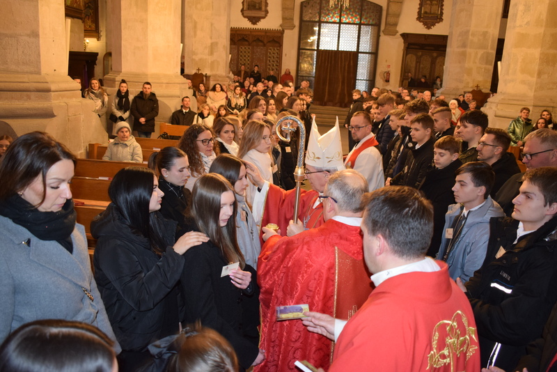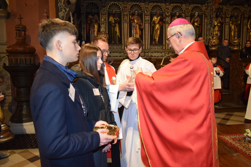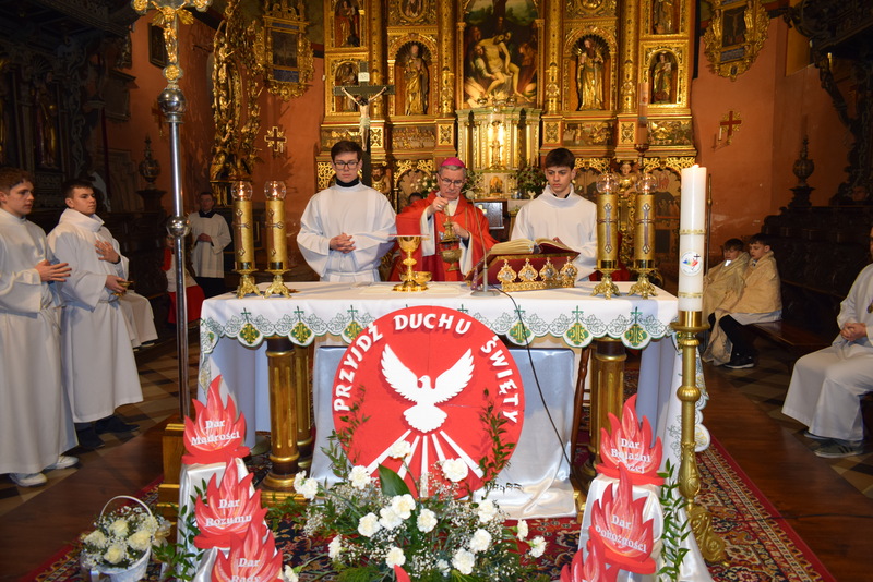 W niedziele – dnia 23 lutego br. – o godz. 16.00 Ksiądz Biskup Jan Wątroba – Ordynariusz Diecezji Rzeszowskiej udzielił Sakramentu Bierzmowania 41 uczniom z klas ósmych. Odwiedziny Księdza Biskupa odbyły się w ramach wizytacji kanonicznej naszej wspólnoty parafialnej. Dlatego podczas Mszy Świętej przedstawiciele Rady Parafialnej wręczyli także Księdzu Biskupowi sprawozdania z działalności Grup Duszpasterskich.