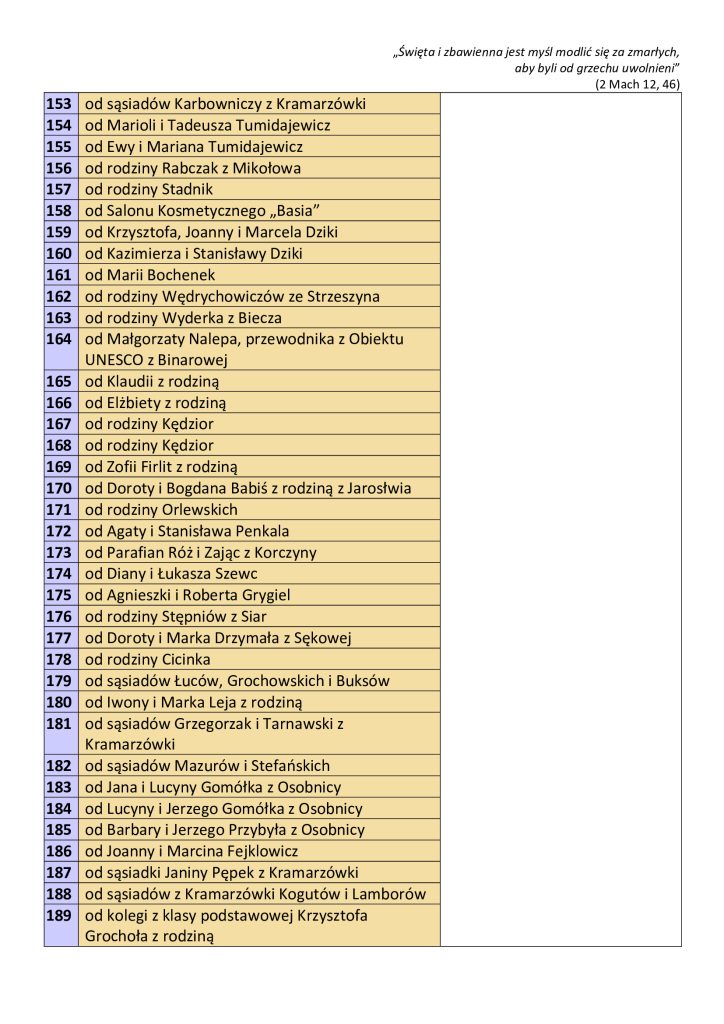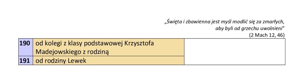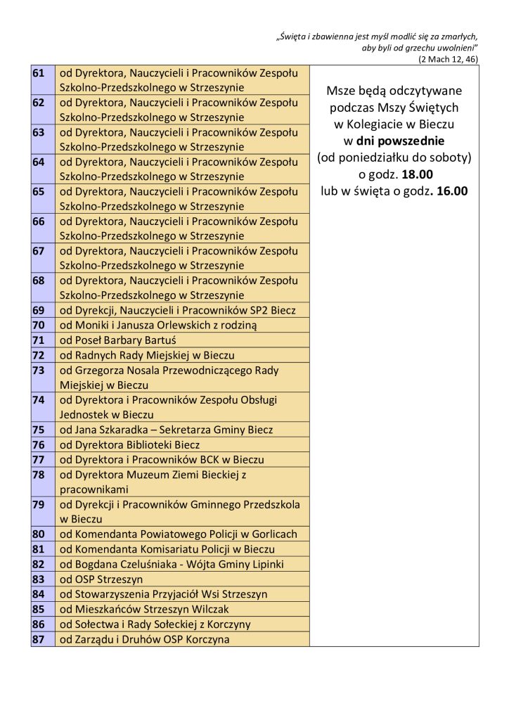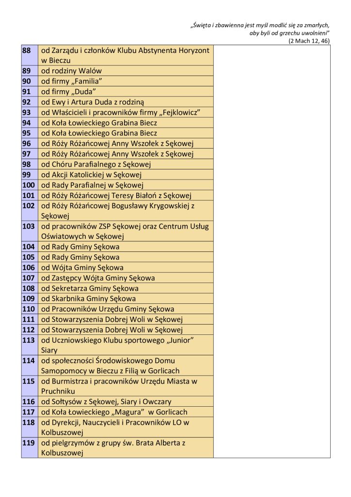 Wykaz mszy pogrzebowych + Ks. Dziekana Janusza Kurasza